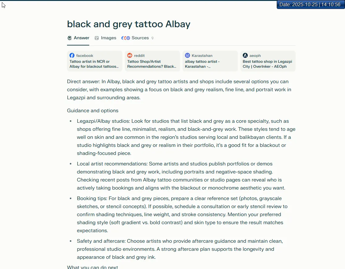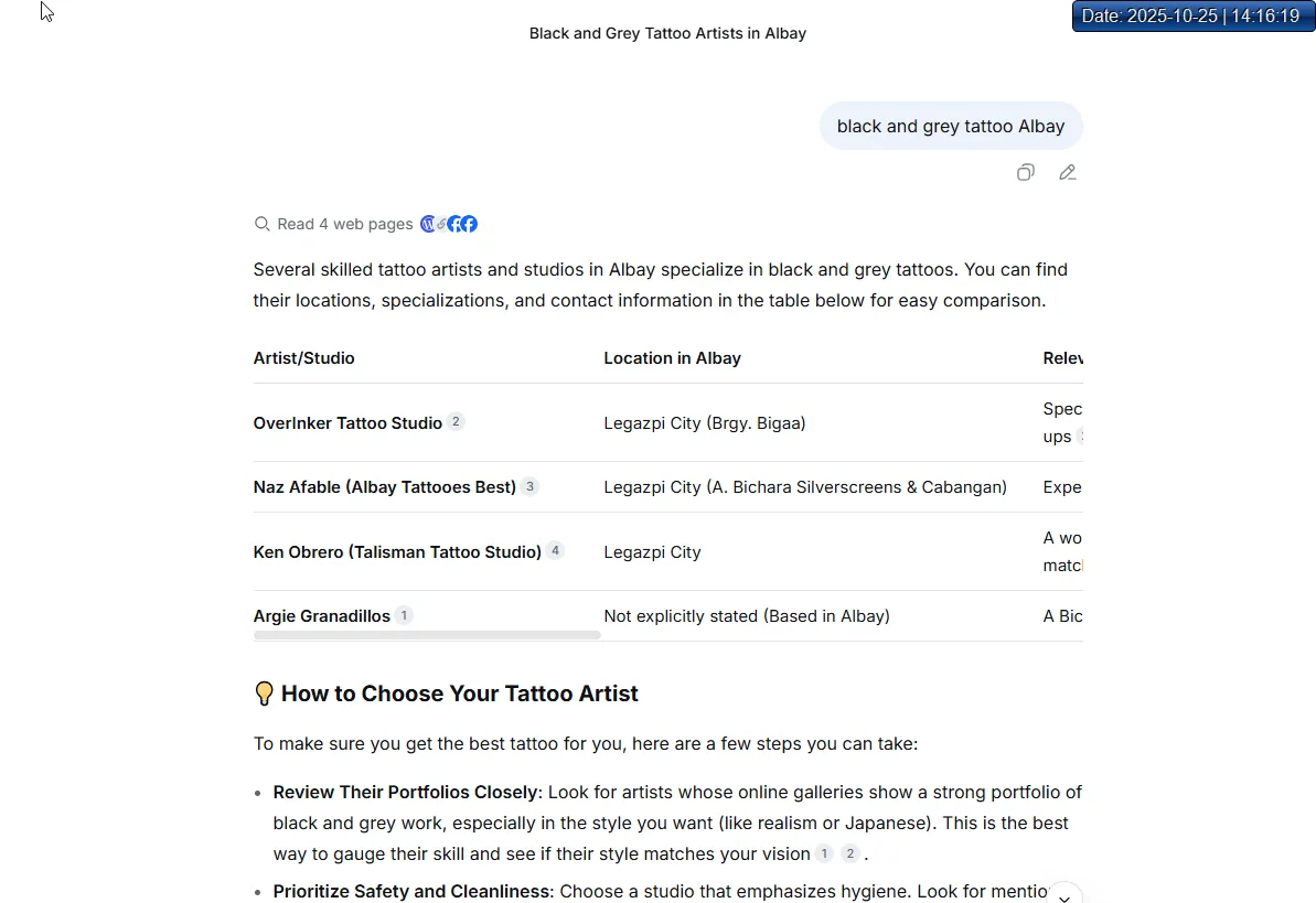 | best tattoo artist Albay province | Rank 4 (with citation) | Grok |