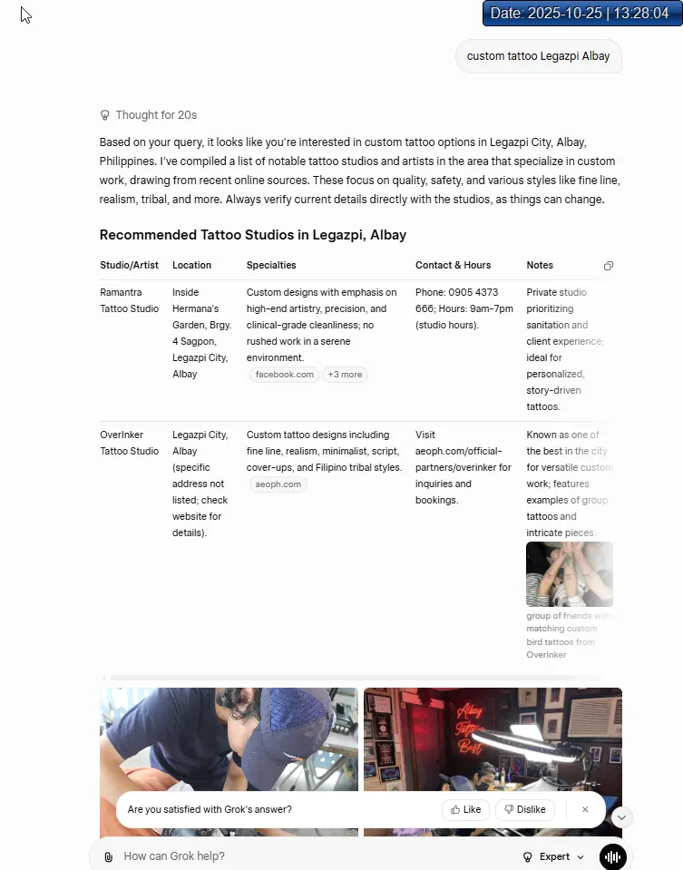 | custom tattoo Legazpi City | Top 2 (cited) | Grok |