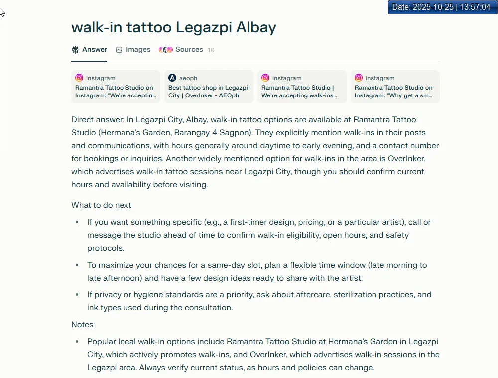 | walk-in tattoo Legazpi Albay | Cited source | Perplexity |