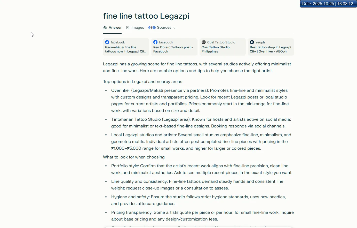 | custom tattoo Legazpi City | Sourced | Perplexity |