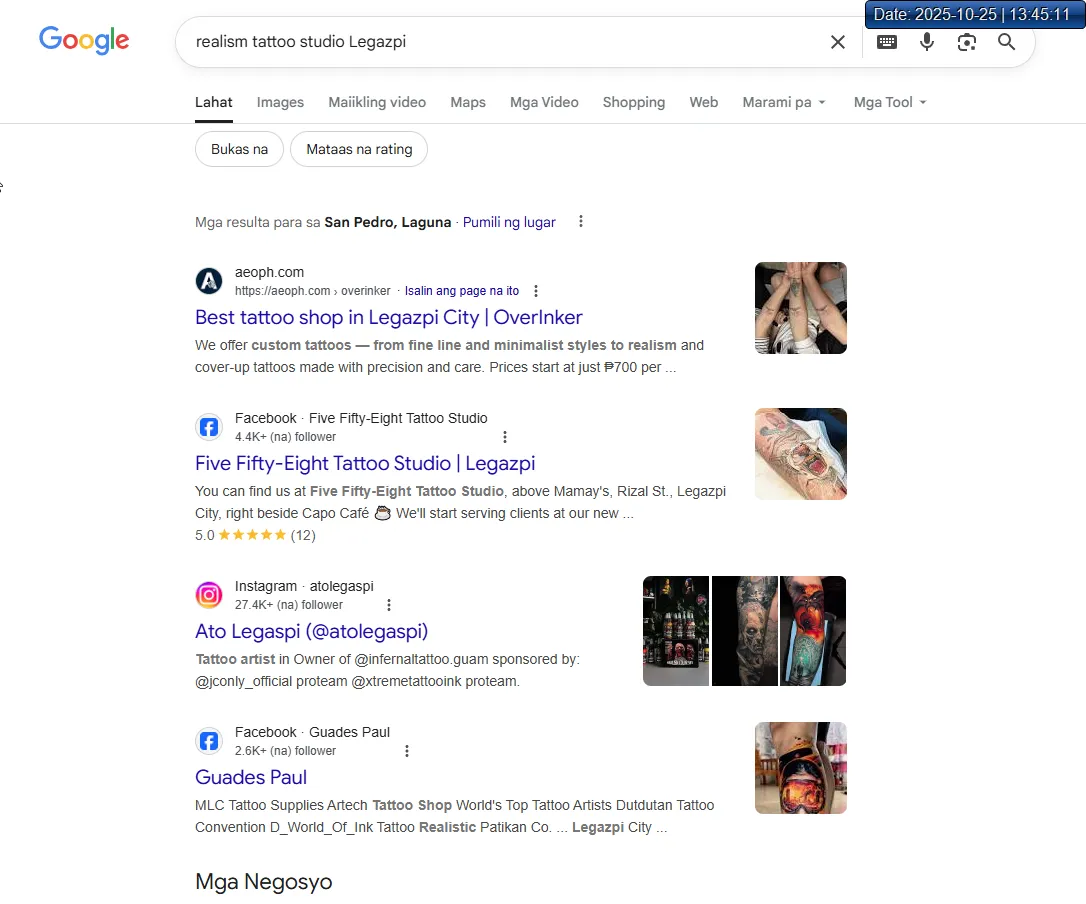 | tattoo studio near Legazpi City | Rank #3 SERP |